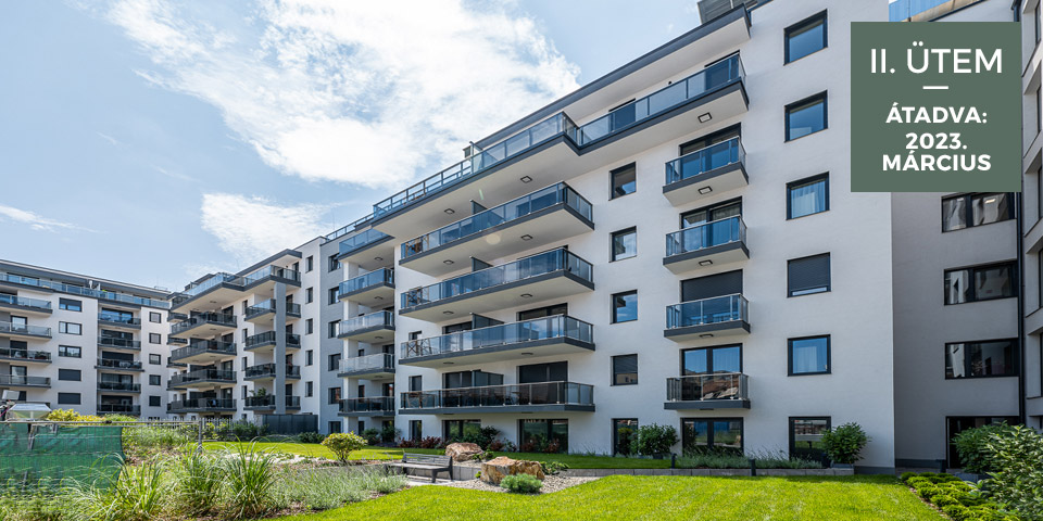 A négy ütemből álló épületegyütteshez összesen 3.000 m2 parkosított kert tartozik majd. A dísznövényes, parkosítot kertek ütemenként megvalósulnak. A társasházak közötti kertek között nincsen átjárhatóság, amely a biztonságérzetet növeli, azonban mégis élvezhetjük az összeépített kertek által nyújtott tágas térérzetet és a kellemes látványt.